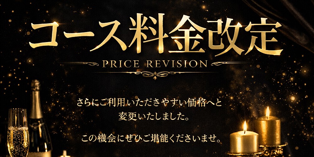 2026/04/04いつもご利用いただきありがとうございます。オープンから1ヶ月、多くのお客様にご来店いただき誠にありがとうございます。この1ヶ月を通して、より多くの方に気軽にご利用いただきたいという想いからコース料金の見直しを行いました。今回の改定により、これまで以上に通いやすく、ご利用いただきやすい価格帯へと変更しております。「気になっていたけどまだ行けていない」そんな方にも、今が始めやすいタイミングです。クオリティはそのままに、価格だけをより身近に。ぜひこの機会にご体感ください。今後ともよろしくお願いいたします。